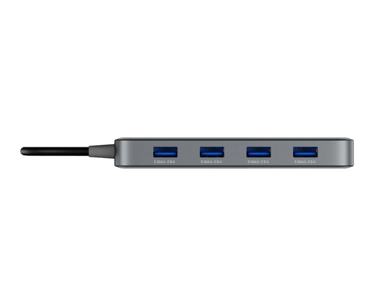 This transparent USB-A hub has four ports for increased efficiency in everyday life. In addition, you have access to a USB-C power input for hard drives, headsets, and other equipment. With a transfer speed of 5 Gbit/s and extensive compatibility, nothing is stopping you from creating a stylish setup with increased efficiency. Connect all the devices you need with no driver installation required. This device is also Plug & Play!