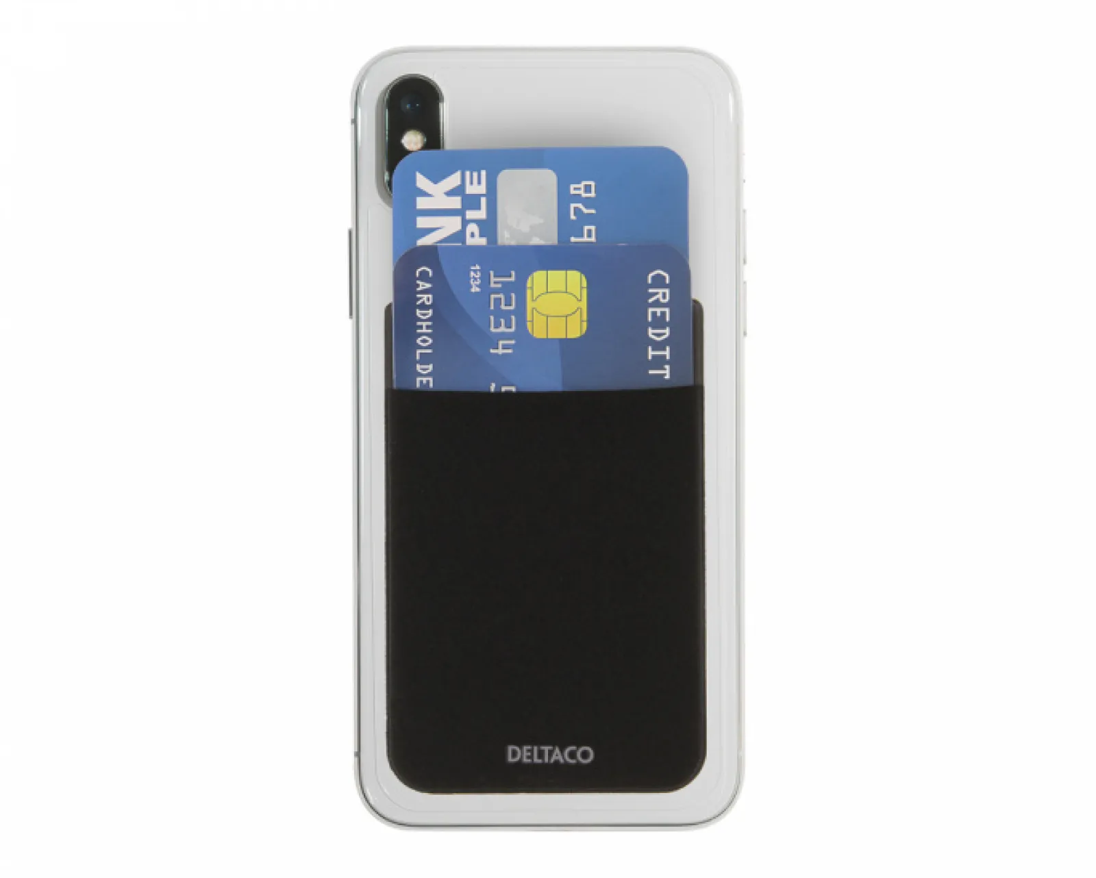 DELTACO’s credit card holder is the perfect way to keep your credit cards, key cards, or other cards of a similar size close at hand. The 3M adhesive mounting surface makes it easy to apply this credit card holder to the back of your smartphone, and the credit card holder holds up to 4 credit cards. In addition, the credit card holder can be easily removed if you no longer want to use it or move it to another surface.