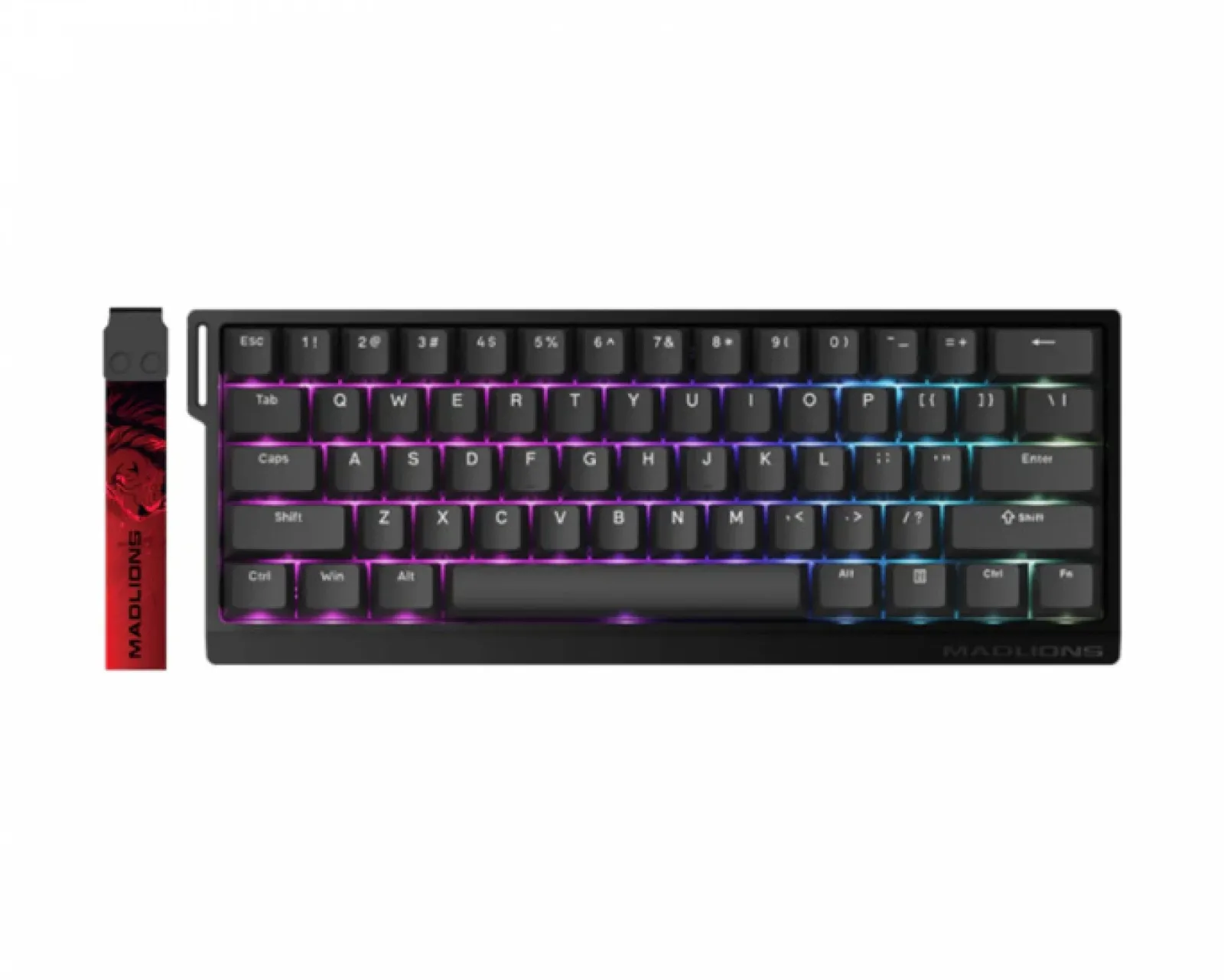 With the option of RGB lighting in 16.8 million colors or a more discreet non-backlit model, the FGG MAD 60 HE RGB allows for a personal touch to match your style. The double-injected or five-sided printed keycaps with OEM profile provide both durability and a comfortable typing experience. For maximum performance, the keyboard is powered by a self-developed web-based driver. With magnetic switches that adjust with a precision of up to 0.01 millimeters, you get the perfect balance between feel and function. The keyboard also comes with a MADLIONS strap as an added detail.