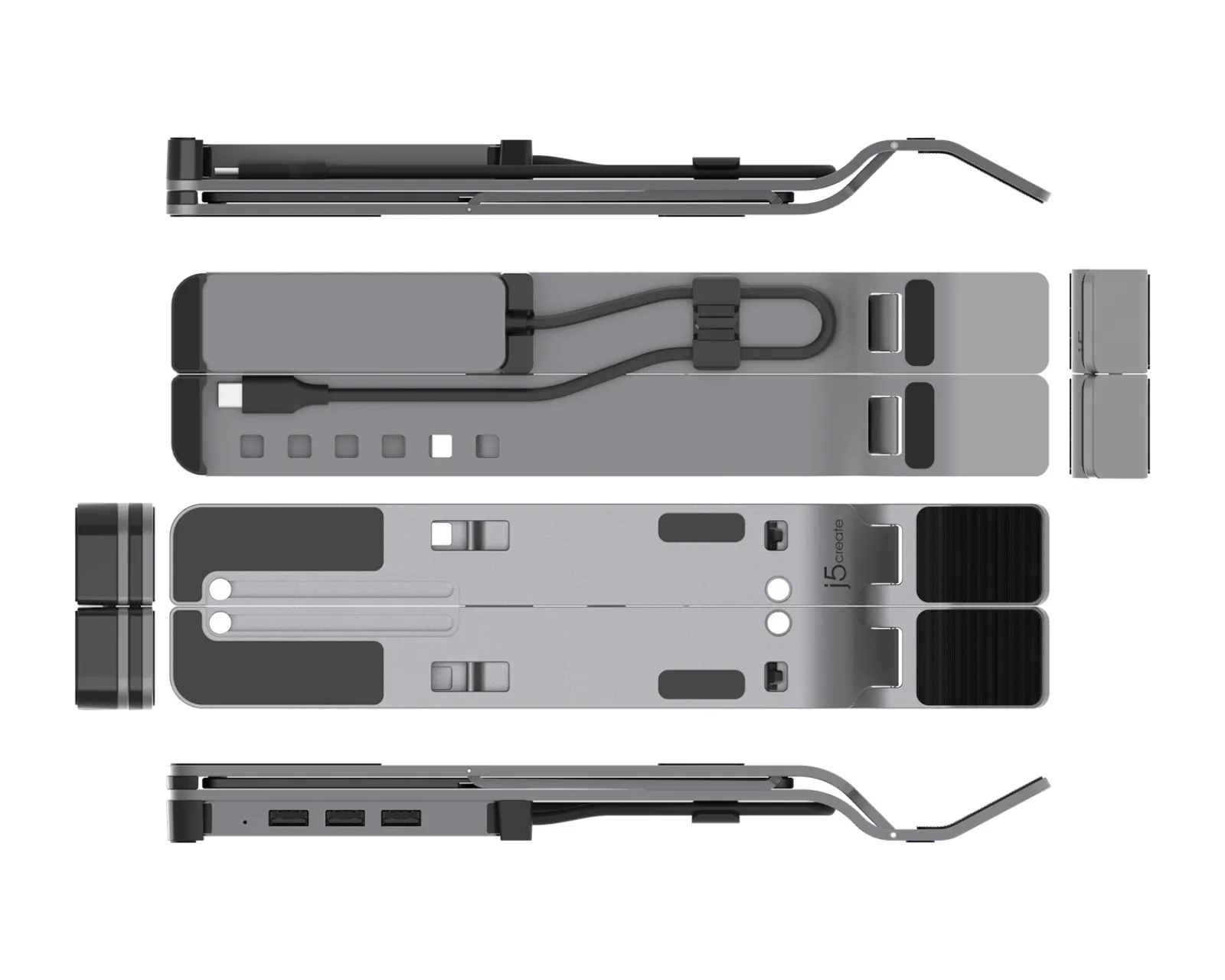 JTS223 is a laptop stand manufactured by j5create and made of durable aluminium designed for laptops and various other items such as tablets, books and similar items. Its collapsible design makes it easy for you to store and take anywhere. The perfect option for those who want to promote health and have a more ergonomic working position when and if they want to play. The stand elevates your device so you don’t have to look down and have bad neck and back posture for an extended period, it simply makes it easier for you to get better posture at your workplace or at home.