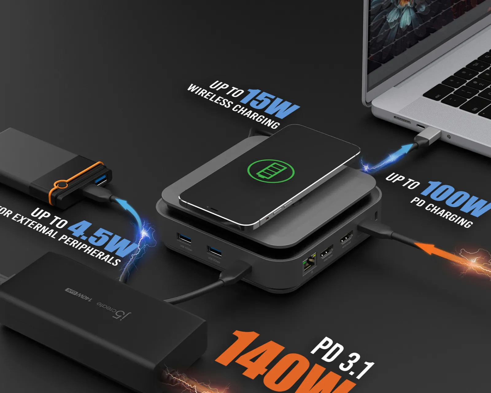 In addition, the dock has both SD and microSD card readers, making it easy to transfer photos and files from your cameras and other devices. You can also benefit from 15W wireless QI charging for your compatible devices.