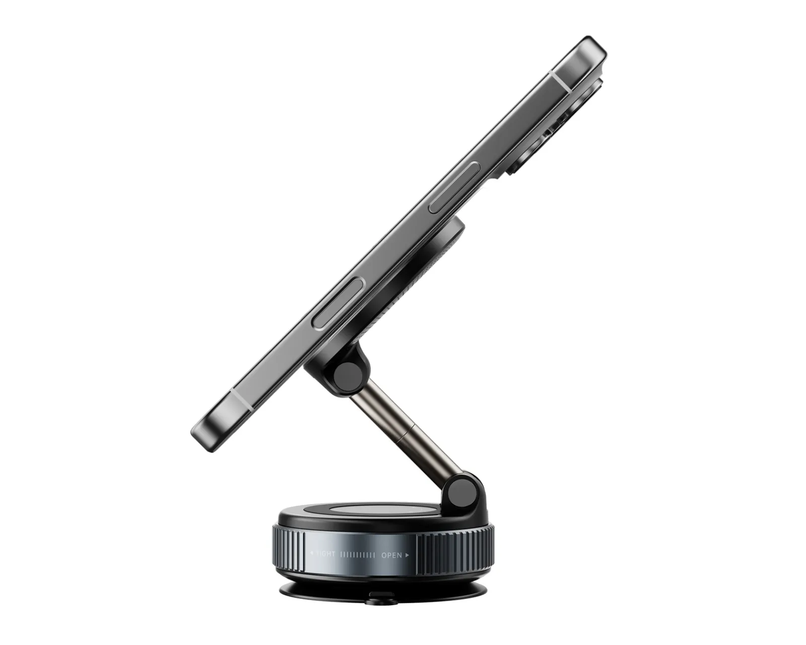 The MaxMount Vacuum Phone Holder Black is the ultimate solution for those who want to keep their smartphone safe and stable, whether you’re driving, working at your desk, or creating content in the kitchen. With a streamlined design and the latest vacuum technology, it not only offers a stylish look but also unmatched functionality. Compatible with smartphones over 4.7 inches, it comes with an integrated magnetic ring and powerful N52 magnets that keep your device securely in place, even during sharp turns or hard braking. The foldable design saves space and makes it easy to carry, while adjustable angles allow for both horizontal and vertical use.