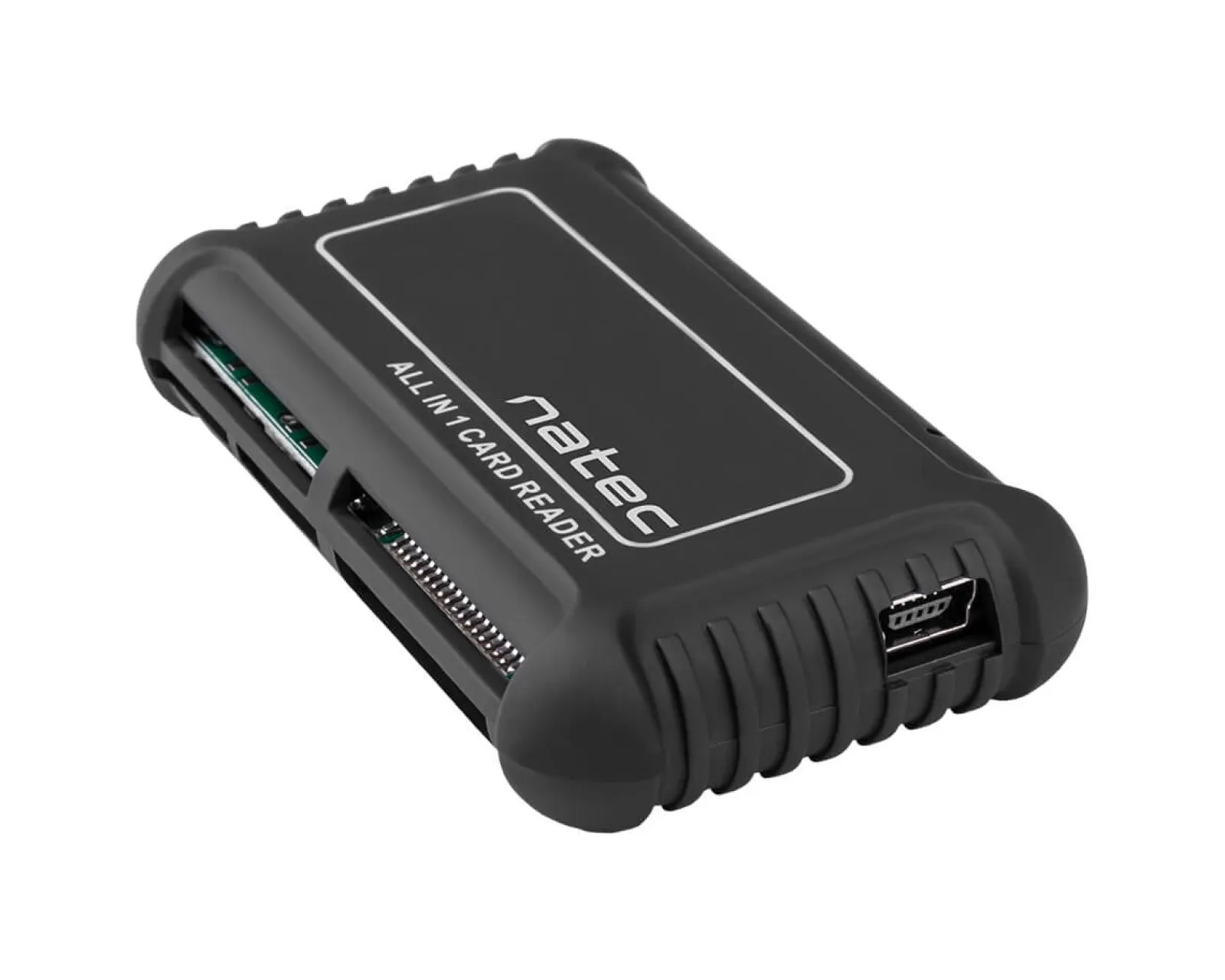 Beetle is an All-in-One reader equipped with 6 slots, including SD/MMC (7 in 1), MS (3 in 1), micro SD/T-Flash, M2, xD and CF. The small size of the product makes it easy to hold it even in your pocket when travelling. The enclosure of the device has been covered with a thin layer of rubber, which ensures a stable position of the device and protects neighbouring objects from scratches during transport. The maximum data transfer is as much as allowed by USB 2.0, i.e. 480 Mb/s.