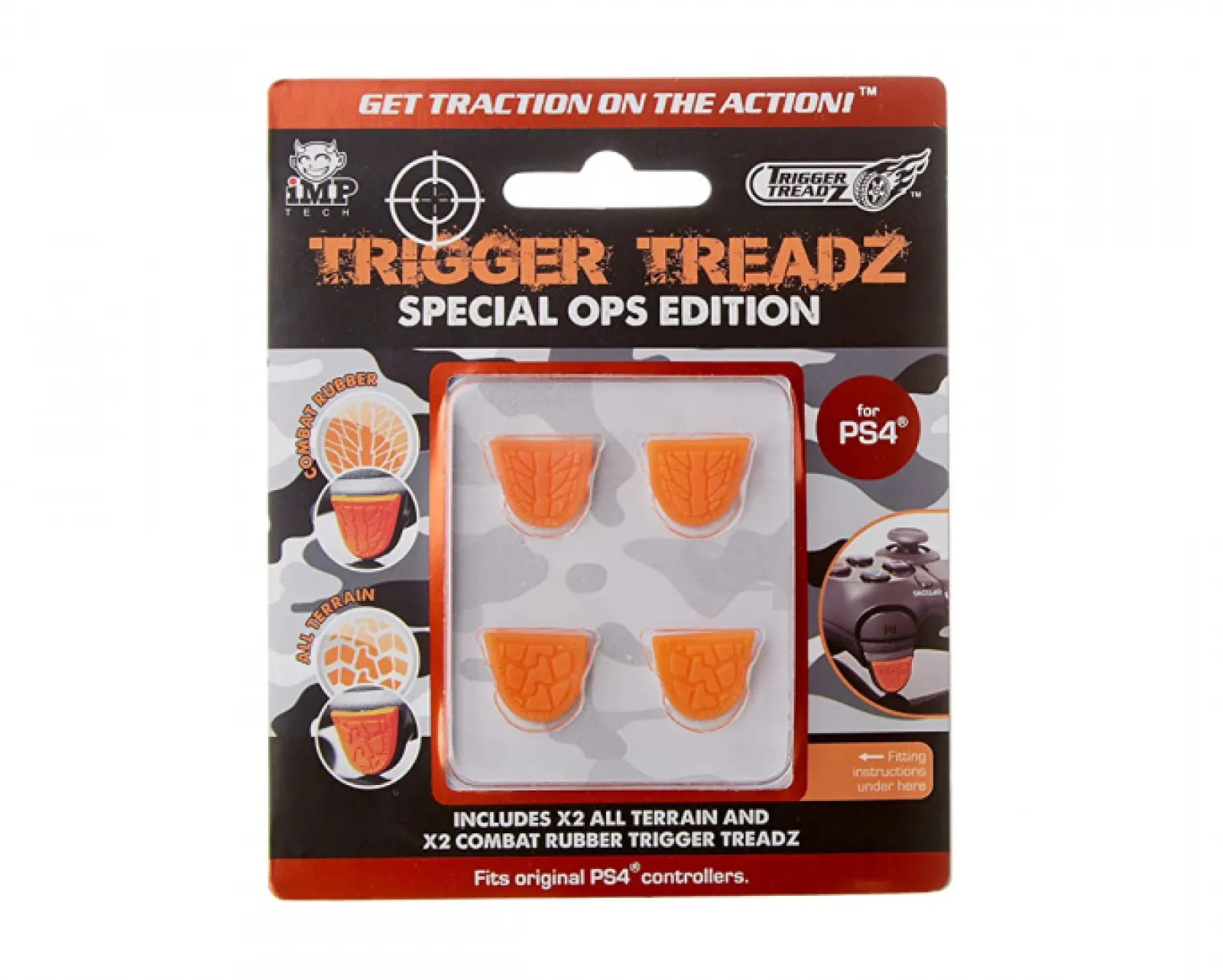 PS4 Trigger Grips fit all original PlayStation 4 controllers. Trigger Grips are made of high quality materials and are comfortable to grip and easy to install. With their non-slip design, they provide a custom fit that keeps your controls securely in place. So get started and enjoy the ultimate gaming experience with PS4 Special Ops Treadz!