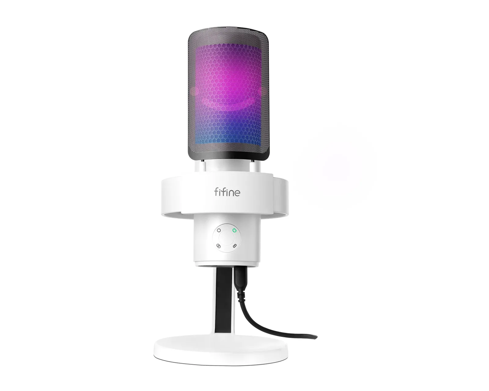 The Fifine AMPLIGAME A9 USB Microphone RGB also has an internal pop filter to smooth out the sound and ensure it sounds crisp and clear. A shock-mount design helps reduce vibrations for better recording quality, and its honeycomb-shaped metal grille helps protect against annoying plosive sounds that can often ruin recordings. For stability, the microphone contains its own solid base with an anti-slip bottom so that it does not slide away. Plus, thanks to its independent light control, you can customize your setup with gorgeous RGB lights in four different modes!