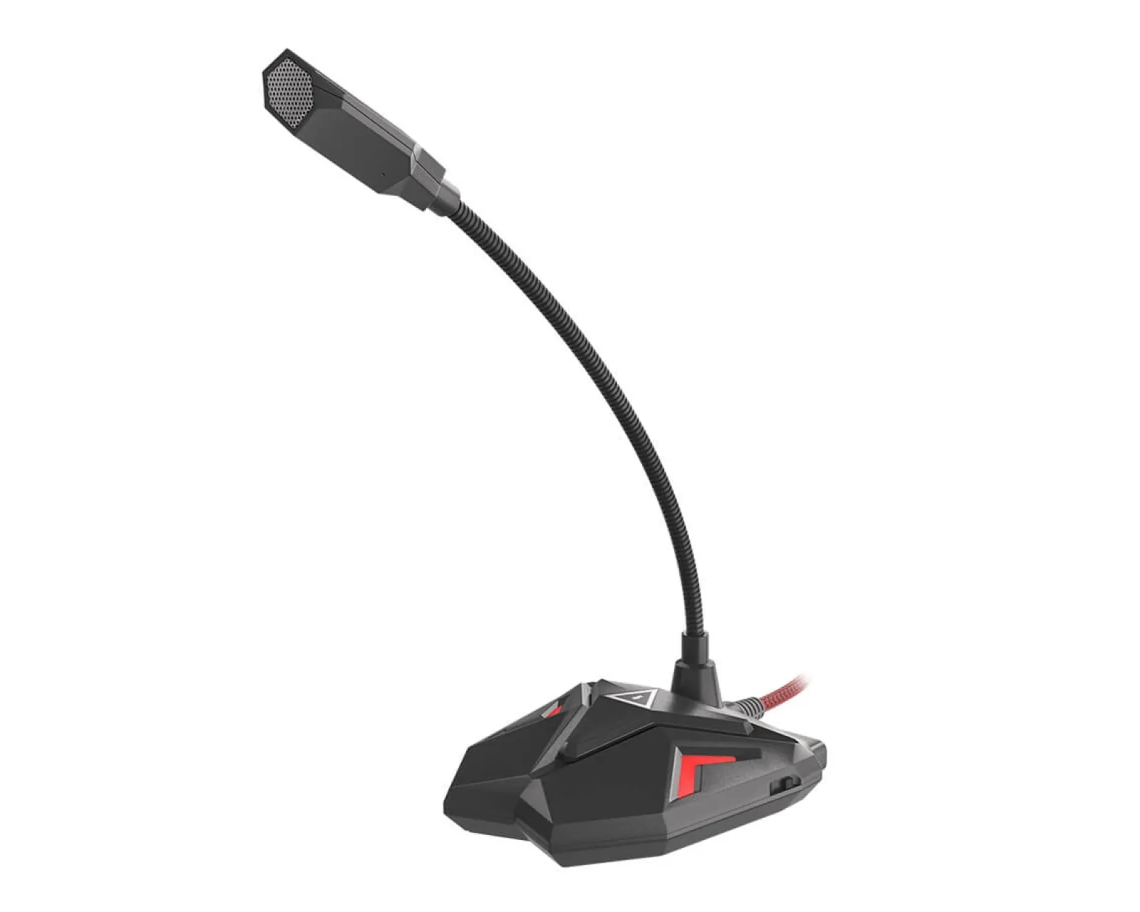 Microphone has omnidirectional pickup characteristic, which means that sounds are picked from every direction with the same sensitivity. Long, one and half a meter cable, braided in black and red textile material and effective LED backlight adds microphone attitude, allowing it to stand out on the gamers’ table. Backlight is also turned off when microphone is muted – thanks to that, player knows exactly, when microphone is active and when it’s not.