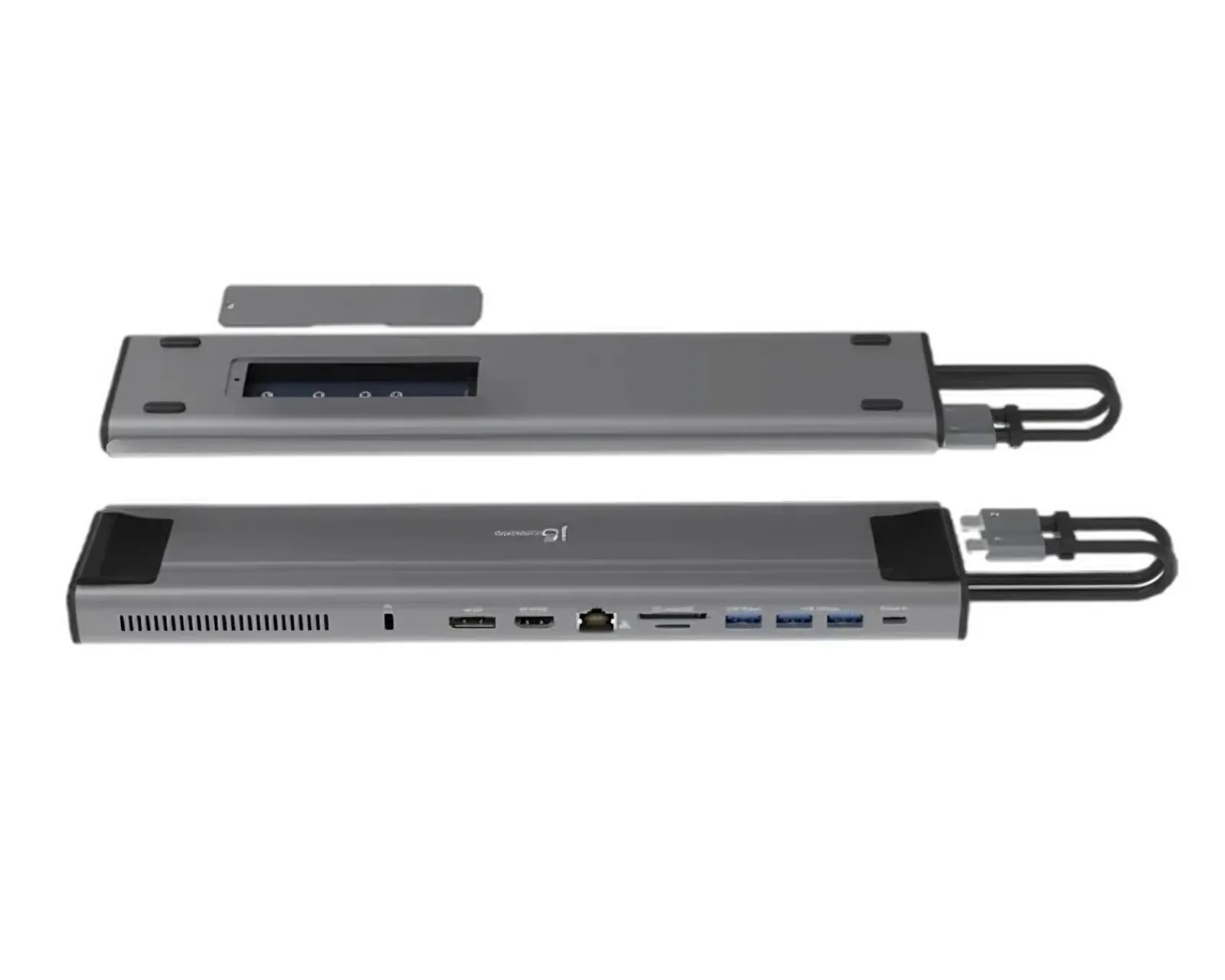 This awesome docking station from J5Create features an M.2 NVMe®/SATA PCIe® SSD slot to boost your internal storage space, a USB-C SuperSpeed USB 10 Gbps port and two USB Type-A SuperSpeed USB 10 Gbps ports, a Gigabit Ethernet port, reader/writer of SD and microSD memory cards and a USB Type-A 5 Gbps port. Everything you need is in one place to make your everyday life easier.